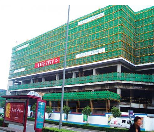 (1)脚手架外侧防护须使用合格的密目式安全网封闭。外架上应设置公司标志(“公司”横幅)和宣传标语。保证外架协调美观,体现企业特色。